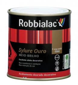 Acabamento dourado, baseado em resina sintética e pigmentada com purpurina.